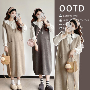 现货2025秋冬孕妇裙时尚衬衫上衣连衣裙气质加厚毛衣孕妇两件套