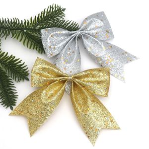 跨境圣诞树蝴蝶结装饰品 节庆金闪粉星星圣诞蝴蝶结派对布置挂件