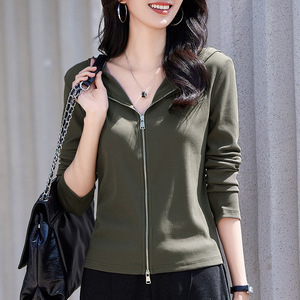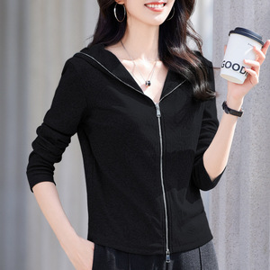 拉链连帽卫衣长袖T恤女装春季2025新款显瘦设计感打底衫开衫上衣