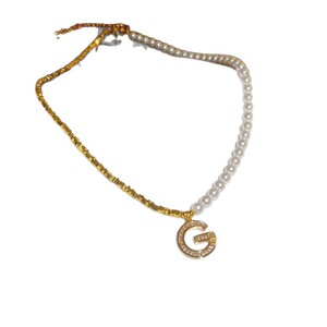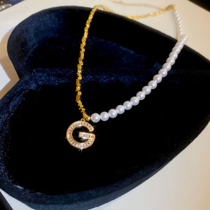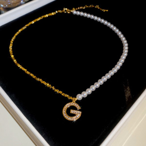 法式超闪锆石字母G珍珠串珠锁骨链时尚百搭项链轻奢高级感颈链女