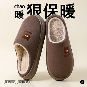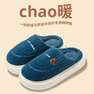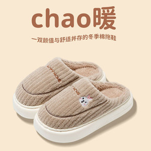 棉拖鞋女秋冬季2025新款室内家居家用防滑保暖毛绒拖鞋男冬天外穿