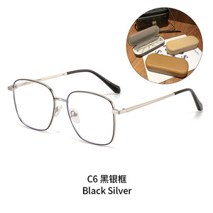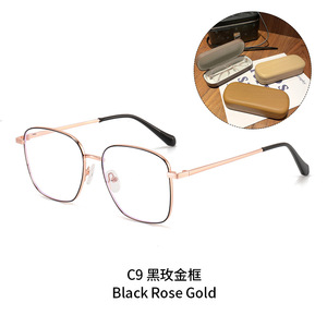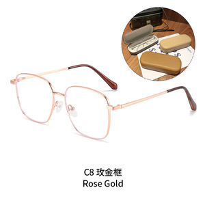 金属大框防蓝光眼镜女高级感方圆脸显瘦素颜可配有度数近视眼镜框