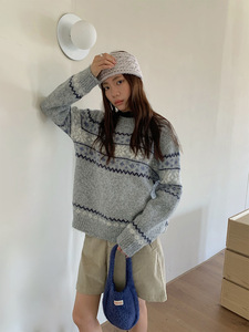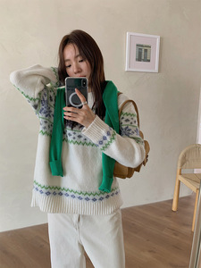 苏奈 复古提花圆领针织衫女25秋设计感显瘦毛衣外套女fromanna