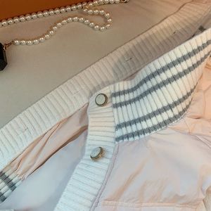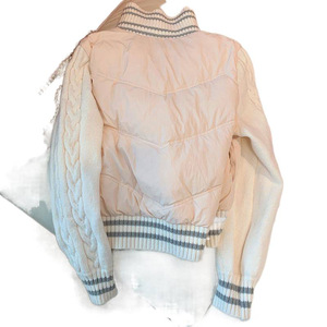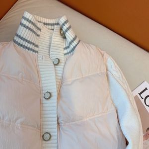 立领粉色拼接毛衣棉服女2025秋冬新款甜美小香风设计感棉衣短外套