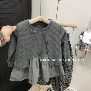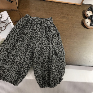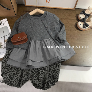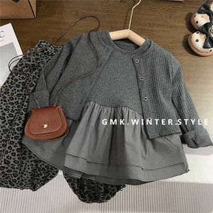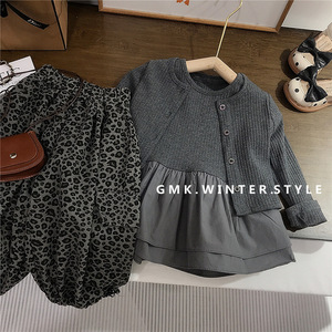 女童针织套装秋季新款儿童无袖背心长袖开衫女宝宝豹纹休闲裤外贸