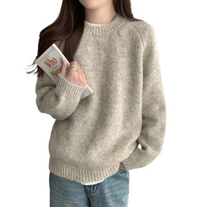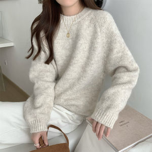 韩系慵懒套头圆领软糯毛衣女秋冬季内搭宽松加厚长袖针织衫上衣