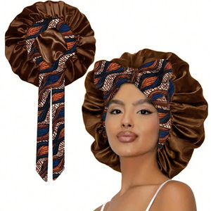 跨境新款色丁印花睡帽 亚马逊热卖宽边飘带特大号浴帽一件代发