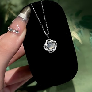 S999纯银天然白玉髓花朵项链女轻奢高级感线条环绕百搭锁骨链饰品