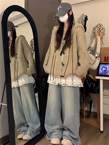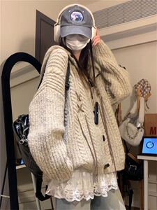 美式复古风牛角扣毛衣外套女2025秋冬新款设计感穿绳针织开衫1345