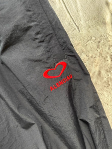 巴黎B家七夕情人节限定爱心刺绣尼龙长裤情侣世家个性卫裤阔腿裤