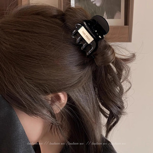 简约字母发夹女高马尾固定小号抓夹半扎发鲨鱼夹气质南瓜夹子头饰