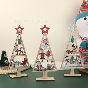 圣诞节装饰品三角木质拼接摆件圣诞节伴手礼派对氛围布置桌面摆饰