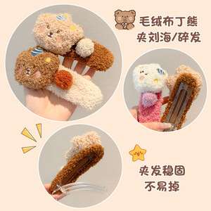 可爱毛绒布丁熊发夹女百搭盘发鸭嘴夹秋冬甜美卡通发卡高级感头饰