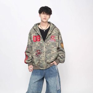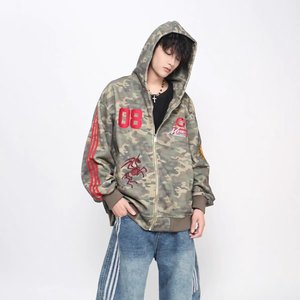 文艺百搭日系简约流行ins原宿迷彩刺绣卫衣慵懒潮流时尚新款气质
