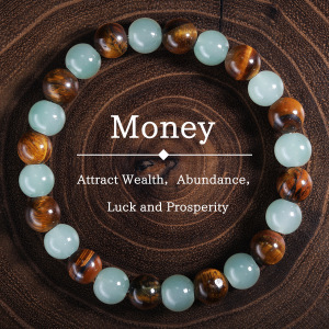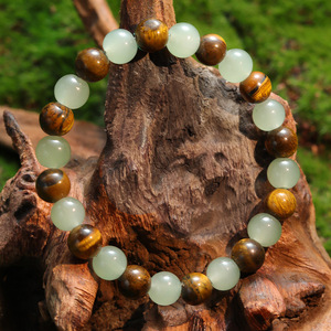 绿东陵虎眼石手链石头串珠手串女金钱财富寓意手饰
