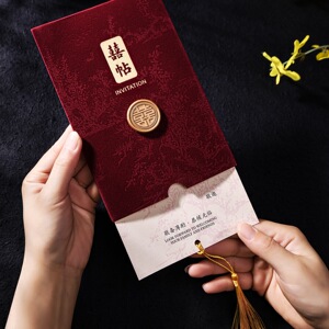 请帖结婚邀请函2025感中式请帖流苏答谢宴婚宴简约喜帖蜗趣