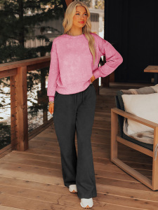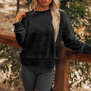 跨境套头衫圆领卫衣女2025秋冬季水洗复古休闲个性街头风长袖上衣