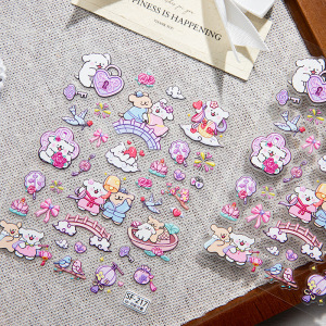 Sky甜蜜线条小狗美甲贴纸中秋月圆卡通可爱指甲装饰贴手账贴画DIY