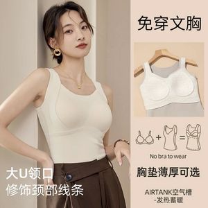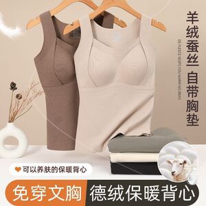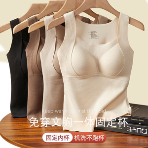 厂家直销跨境爆款秋冬德绒无痕加厚保暖背心带胸垫内搭打底上衣女