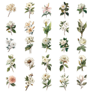 50张复古长枝花朵贴纸SLP153