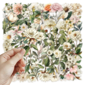 50张复古长枝花朵贴纸防水PET手账花朵郁金香手机壳复古风贴画