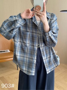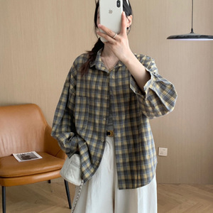 琪镌绘制2025秋季新款TR复古格子长袖衬衫女休闲开衫宽松外套903