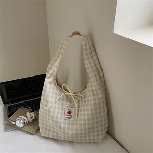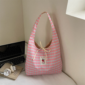 韩版卡通番茄标格纹背心包大容量学生上课双面背包时尚百搭单肩包