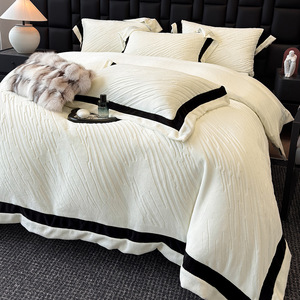 2025新款雕花牛奶绒双拼角四件套保暖珊瑚绒被套学生宿舍三件套