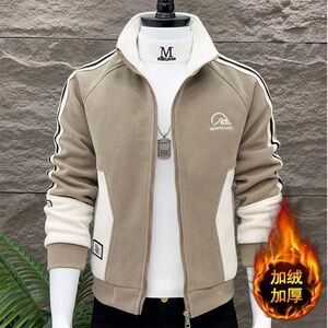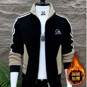 2025冬季新款男士夹克外套加绒加厚保暖时尚撞色立领百搭潮流上衣