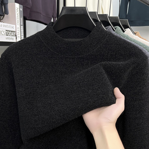 2025爆款加绒加厚半高领简约商务休闲保暖亲肤男士针织衫毛衣