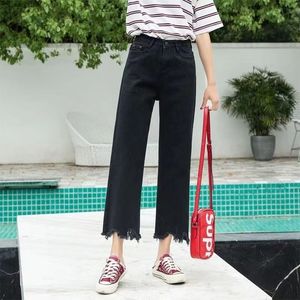 美式复古阔腿弯刀牛仔裤女秋季新款设计感高腰宽松直筒休闲长裤潮