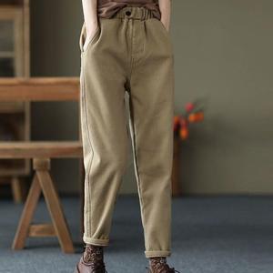 秋棉布加厚裤子新款休闲裤女松紧腰加绒哈伦裤色春时尚长女裤