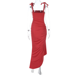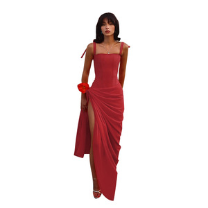 YJ25300欧美风背心气质束腰礼服连衣裙 2025秋季新款气质修身长裙