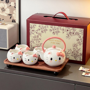 凯蒂猫咪陶瓷泡茶壶茶具套装礼盒可爱茶杯乔迁新居结婚生日礼物