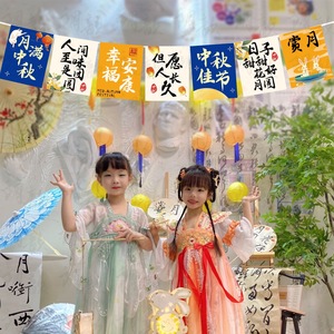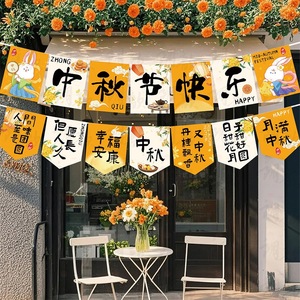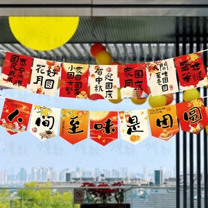 中秋节场景布置装饰挂旗国庆活动氛围商场店铺橱窗条幅幼儿园道具