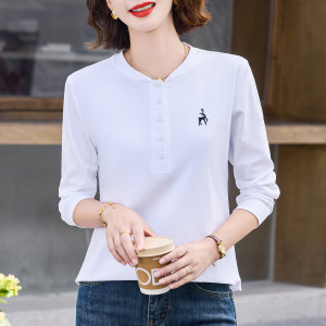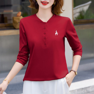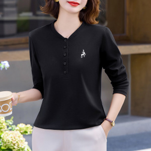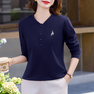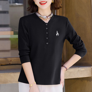 正肩v领长袖t恤女2025新款秋季爆款高端女装薄上衣洋气内搭打底衫