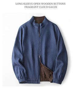 亚麻老钱风Bomber男士外套立领双面穿夹克休闲春秋外套上衣春秋款