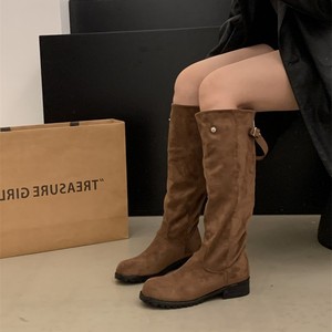 英伦风不过膝长筒靴女2025新款拉链厚底高筒靴褶皱堆堆靴
