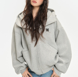400克纯棉 高领开衫空气层卫衣连帽上衣男女秋冬加厚情侣装外套