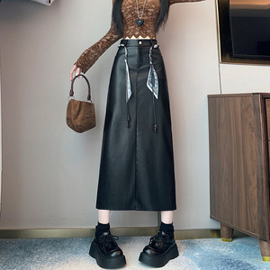 黑色皮裙半身裙女秋冬长款后开叉包臀直筒一步裙高腰显瘦a字半裙