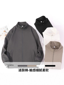 320g重磅迪肤棉拉链开衫卫衣男秋冬宽松落肩纯色立领卫衣外套批发