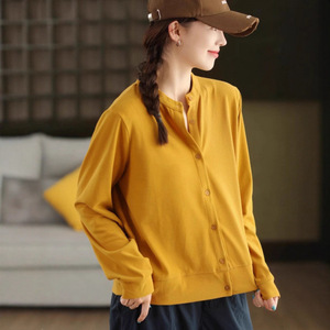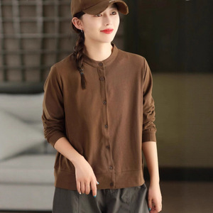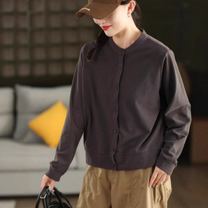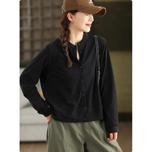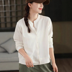 2025复古棉质衬衫女新疆棉质外套立领单排扣长袖纯色上衣秋 女