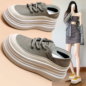两穿爆款真皮厚底小白鞋女2025新款内增高百度运动休闲鞋