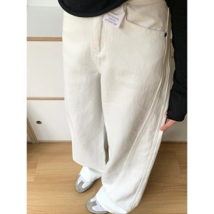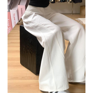 白色裤子女宽松设计感2025年春夏新款高腰垂感拖地阔腿弯刀牛仔裤