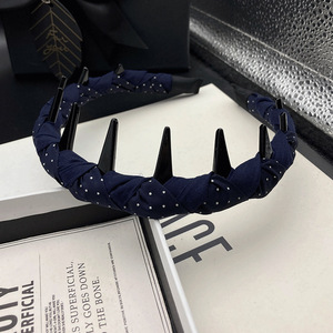 发卡发箍女2025网红新款藏蓝波点带齿防滑窄边头饰压发洗脸头箍