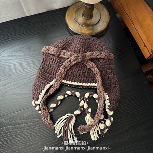 檀健次同款眼镜可拆卸毛线帽子女搞怪护耳针织飞行帽雷锋帽显脸小