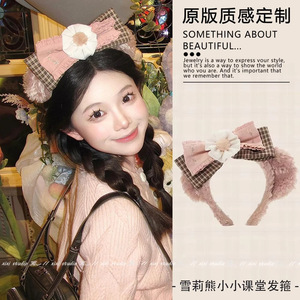 雪莉熊格子蝴蝶结发箍