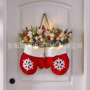 跨境新品Twinkling Christmas Mitten Wreath圣诞节发光手套花环