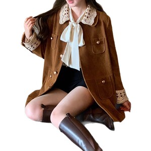 2025秋季MIU系复古翻领中长款麂皮/丝绒外套工装风衣女美拉德穿搭