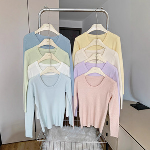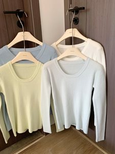 慵懒感U领针织衫女秋季2025新款修身显瘦内搭打底衫紧身毛衣